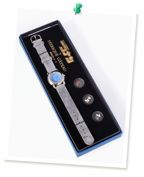 Le temps, pour un détective, c’est important. Et ça l’est d’autant plus pour les fans de Conan Edogawa ! C’est pourquoi la marque « Super Groupies » s’est associée avec les magasins « Féerique Gâteau » au Japon pour réaliser et commercialiser une montre Détective Conan !  Petite particularité: celle-ci est personnalisable ! En effet, vous pourrez incorporer sous le verre de protection du cadran des petits objets de l’univers du manga !