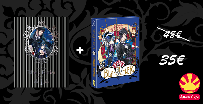 Grande nouvelle pour les fans de Black Butler. Lors de la Japan Expo, repartez avec l’artbook et le coffret dvd blu-ray de Book of Circus vol.1 pour 35 euros au lieu de 48 euros !